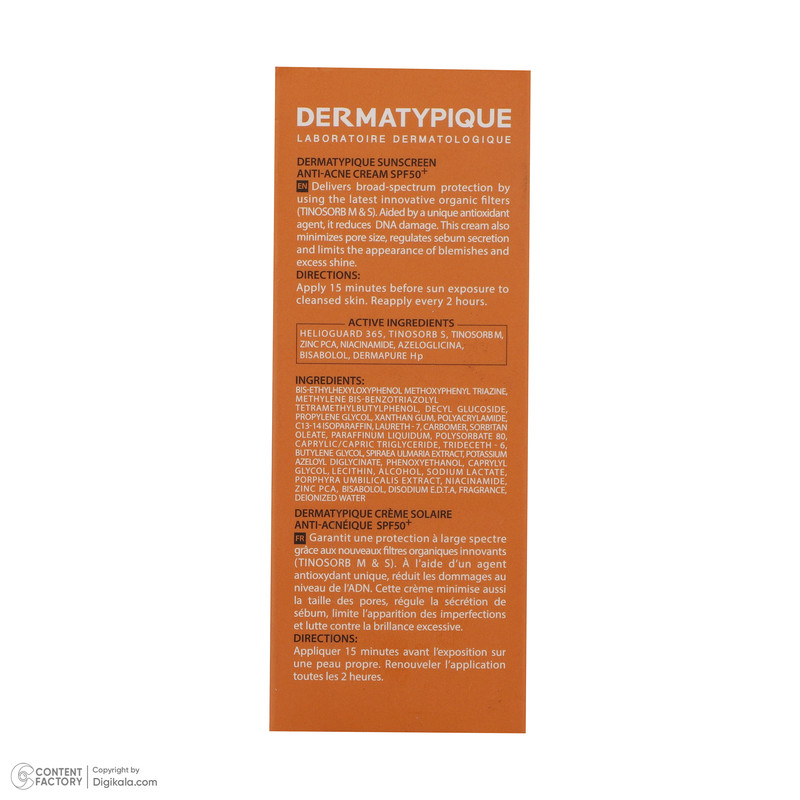 کرم ضدآفتاب درماتیپیک مدل Anti -acne، حجم 40 میلی‌لیتر