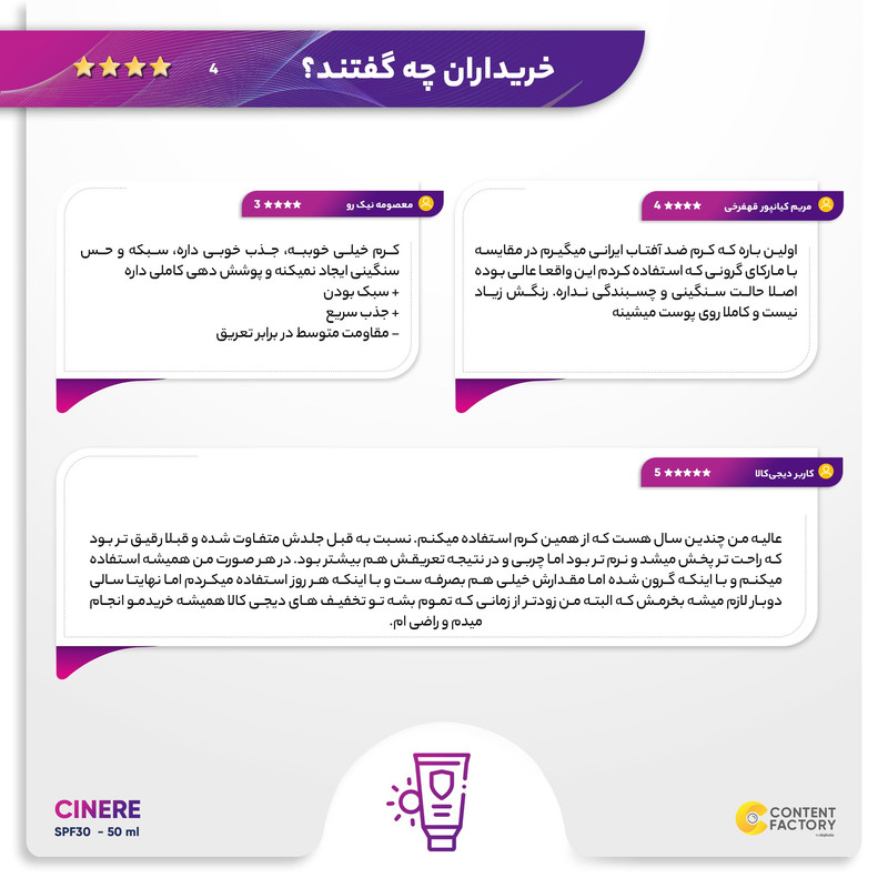 SPF 30 این کرم، سطح مناسبی از محافظت در برابر اشعه UVB را فراهم میکند. اشعه UVB مسئول سوختگیهای پوستی و آسیبهای ناشی از تابش مستقیم خورشید است، و با استفاده از این کرم، میتوانید به خوبی از پوست خود در برابر این اشعه محافظت کنید. همچنین، محافظت در برابر اشعههای UVA که عامل اصلی پیری زودرس و لکههای پوستی هستند، با این کرم به خوبی تأمین میشود. ماندگاری 2 ساعته این کرم به معنای نیاز به تجدید دورهای آن است. برای بهترین نتیجه، توصیه میشود هر 3-4 ساعت یکبار و نیم ساعت قبل از تماس با نور خورشید، مقدار مناسبی از کرم را روی پوست بمالید و به خوبی پخش کنید.