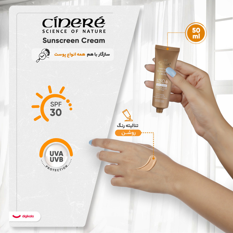 کرم ضد آفتاب بژ روشن سینره با SPF 30، برای ارائه محافظت و بهبود رنگ پوست طراحی شده است. این کرم با ویژگیهای منحصربهفرد خود، از جمله تنالیته رنگ روشن، به نرمی و یکنواختی پوست کمک میکند. تنالیته رنگ روشن این کرم، به ویژه برای افرادی که به دنبال بهبود رنگ پوست خود هستند، بسیار مناسب است. این ویژگی به پوست ظاهر یکدست و شادابی میبخشد و میتواند به عنوان یک پایه مناسب برای آرایش مورد استفاده قرار گیرد. این کرم علاوه بر زیبایی ظاهری، با خواص محافظتی خود به جلوگیری از آسیبهای ناشی از نور خورشید کمک میکند.