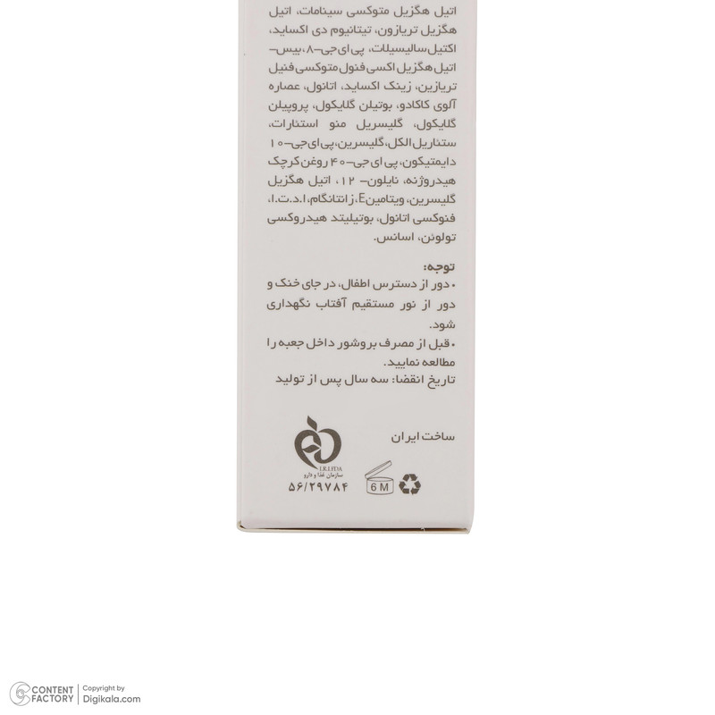 راهنمای استفاده : قسمت هایی از پوست که در معرض نور خورشید قرار می گیرد (صورت و پشت دست ها) را با مقدار کافی از محصول بپوشانید. هر 2 ساعت یک بار تجدید شود.